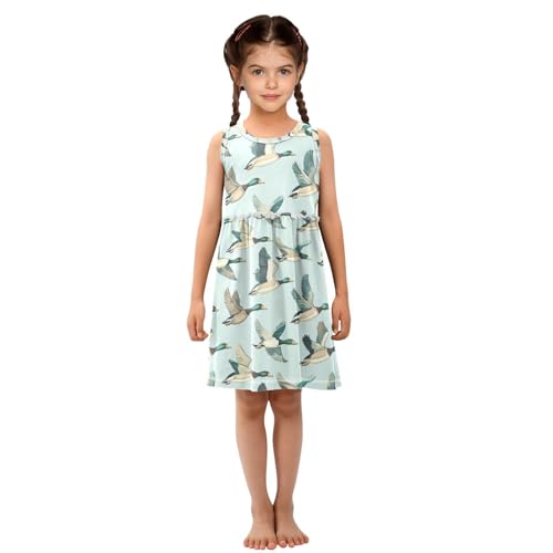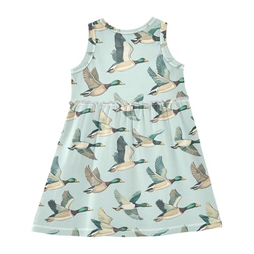 Mallard Flying Sky Girl Sleeveless Tank Dress Duck Crewneck Twirl Swing Dress for Kids 2T 3