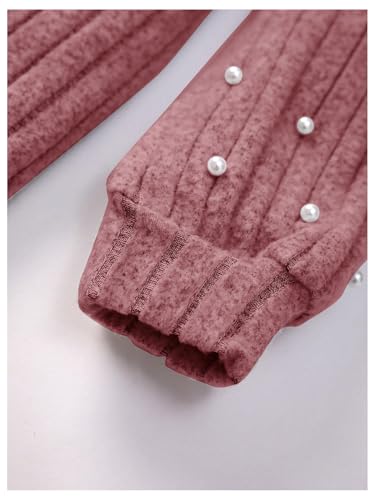 SHENHE Girl's Turtleneck Pearl Beaded Ribbed Sweater Dress Long Sleeve Belted Knit Dress 6