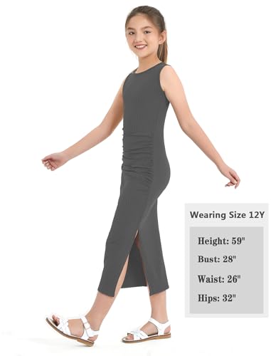 EXARUS Girls Bodycon Maxi Dress Teen Spaghetti Strap Slip/Sleeveless/Short Sleeve/Long Sleeve Pencil Casual Long Dresses 5