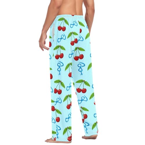 HOT ! Cherry Blue Bows Men's Cotton Pajama Pants with Pockets and Drawstring Comfortable and Stylish,S