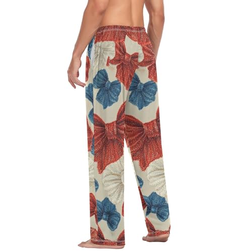 Men's Pajama Pants Retro Bows Red Blue Sleep Pajama Lounge Pant with Pockets, Elastic Waistband 6