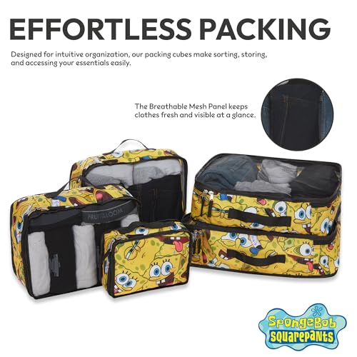 SpongeBob SquarePants Packing Cubes Set – 5-Piece Travel Luggage Organizer with SpongeBob, Patrick & Mr. Krabs – Fun Packing Essential for Kids, Teens, and Adults 5