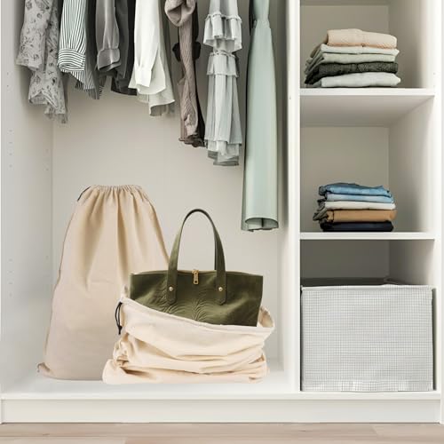 Klmnop 5 Pack Organic Cotton Breathable Dust Storage Bags for Handbags, Large Purse Storage Pouch with Blank Hang Tags, Expensive Handbags & Shoes Organizer For Closet, Travel(26 × 20 Inch, Beige) 5