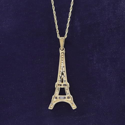 More information about 1/6 Ct Eiffel Tower Charm Pendant Necklace in 14K Gold Over Sterling Silver