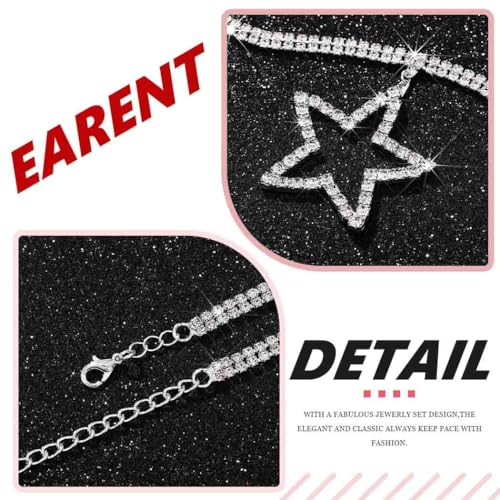 EARENT Star Necklace Sparkly Silver Rhinestone Necklaces for Women 4