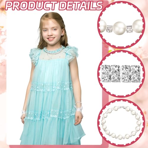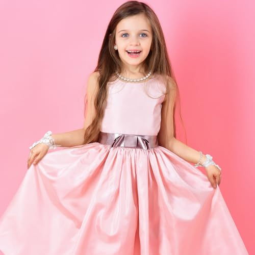 Newcotte 4 Pcs Pearl Necklace Sets for Little Girls Toddler Girls Jewelry Communion Glove for Christmas Tea Party Wedding 7