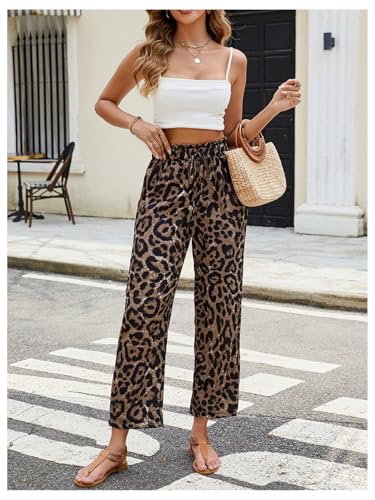 MakeMeChic Women's Leopard Print Pants Straight Leg Pants Elastic Waist Tie Front Trousers 6