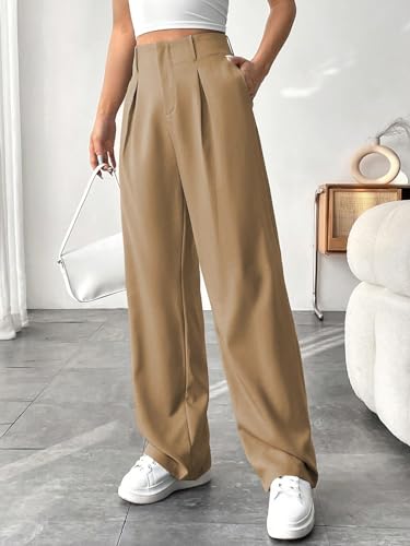 • Style:Casual / Details:Pocket / Details:Zipper / Closure Type:Zipper Fly / Details:Plicated / Color:Khaki / Pattern Type:Plain / Type:Wide Leg / Waist Line:Natural / Length:Long / Fit Type:Loose / Fabric:Non-Stretch / Material:Polyester / Composition:95% Polyester / Composition:5% Elastane / Care Instructions:Machine wash or professional dry clean / Temperature:Spring/Fall (18-25℃/63-77℉) / Body:Unlined / Sheer:No