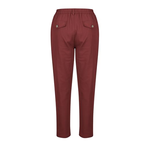 • [FEATURES] -- Women’s Dress Pants / Womens Casual Pants / Zipper Closure / Elastic Waist In The Back / Tapered Pants / Cropped Length / Slanted Pockets / Cotton Pants for Women / Decorative Pocket Flaps at Back/ Soft Material / Solid Color.