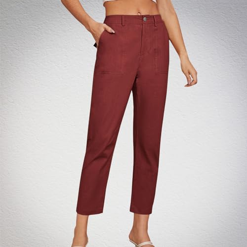 HOT ! Cropped Dress Pants for Women Business Casual High Waist Ankle Work Pants Straight Leg Capri Trousers with Pockets