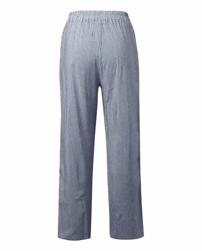 2025 Summer Women's Striped Home Pants Printed Straight Casual Style Side Adjustable Buckle Lightweight Vacation 6