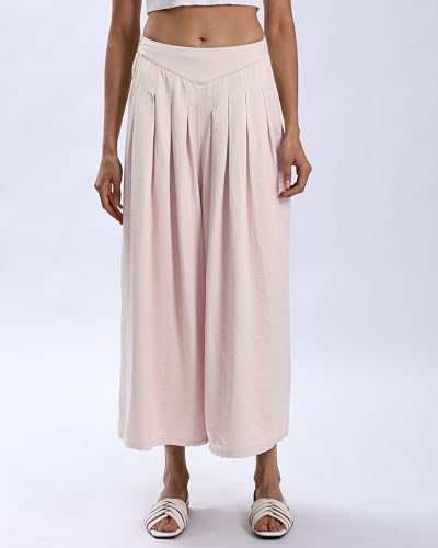 Xintianji Women's Ruffled Texture 9/10 Length Wide Leg Dress Casual Pants with Side ZipperSide Pockets 6