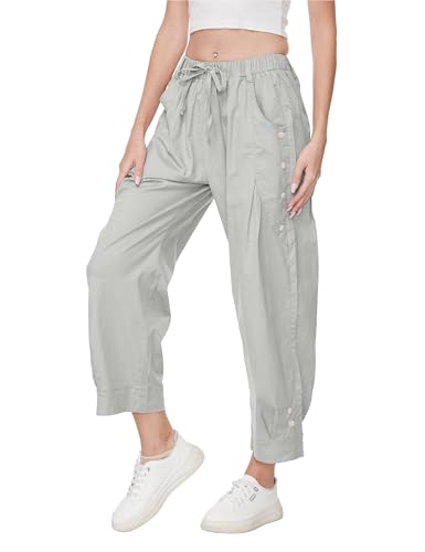 • DESIGN: This casual cinch bottom lantern Harem cropped pants for women feature an elastic waistband and drawstring design, allowing you to easily adjust the elasticity and create a comfortable and flexible adjustable fit. The loose wide leg design allows you to move freely. Decorative button design showcases fashionable personality.