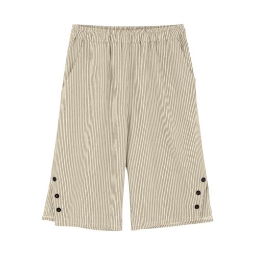 Pedal Pushers for Women Pull On Wide Leg Cotton Linen Casual Pants Solid Color High Waisted Shorts 6