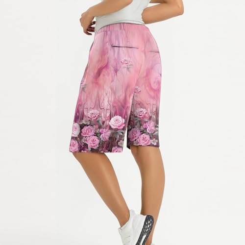 Linen Crop Pants for Women Fashion Knee Length Shorts Elastic Waist Straight Summer Drawstring Boho Pants with Pockets 2