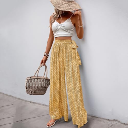 Women High Waist Wide Leg Pants Summer Casual Palazzo Pants Lounge Beach Trousers 6