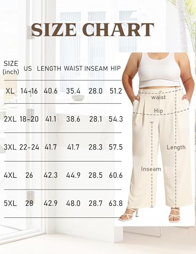 COOTRY Plus Size Wide Leg Dress Pants Women High Waisted Work Pants Business Casual Pants Trousers with Pockets Beige 3XL 5