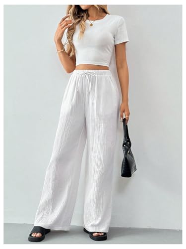HOT ! SHENHE Women's Drawstring Waist Wide Leg Casual Loose Pants Textured Pants with Pockets