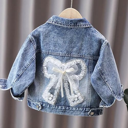 Little Big Girls Embroider Butterfly Denim Jacket,Back To School Jean Jacket For Girls,Bow Lace Outwear Coat Birthday Gifts 4