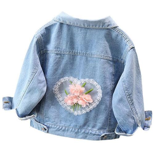 • Little Big Girls Embroider Butterfly Denim Jacket,Back To School Jean Jacket For Girls,Bow Lace Outwear Coat Birthday Gifts,Pink,2-3 T