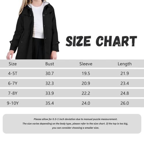 • Size : Chest(in) : Sleeve Length (in) : Length (in) ; 4-5T : 30.7 : 19.5 : 21.9 ; 6-7Y : 32.3 : 20.9 : 23.4 ; 7-8Y : 33.9 : 22.2 ; 24.8 ; 9-10Y : 35.4 : 24 : 26 . Please allow for a 0.5-1 inch deviation due to manual puzzle measurement. The size may vary depending on the body type, please refer to the size chart.