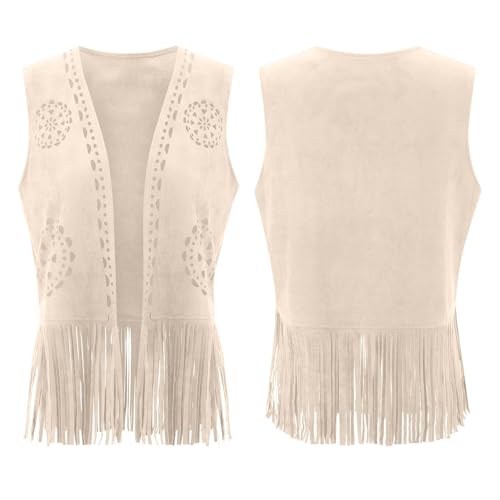 Women Boho Western Tassel Vest Open Front Faux Suede Fringe Cardigan Sleeveless Jacket Vintage Hippie Outwear Fashion 5
