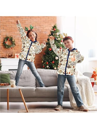 Books Leaves Coffee Girls Fleece Jacket Girls Fall Jacket Boys Coats Zip Up Hoodie Children Sherpa Warm Outerwear 2-10T 5