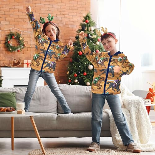 Horse Racing Scene Pattern Toddler Fleece Jacket Girl Boys Hooded Fleece Jacket Coat Warm Outwear Zip-up 3-10T 3