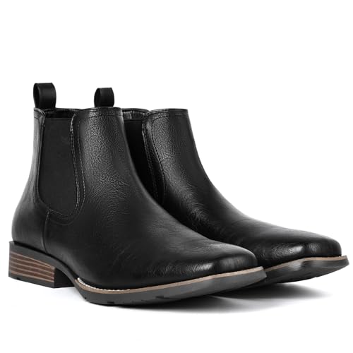 IUV Men's Chelsea Boots Square Toe Western Ankle Boots Slip On Casual Dress Cowboy Boot 1