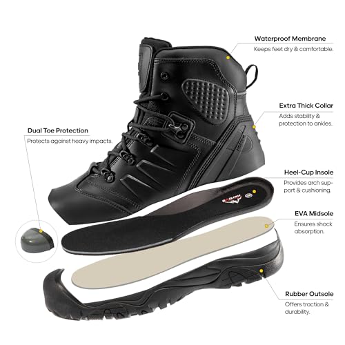 • Waterproof Membrane Enhances Comfort & Productivity - Keeps feet dry while maintaining breathability, allowing for all-day work without discomfort, making these waterproof work boots perfect for long hours in various environments, including tactical settings.