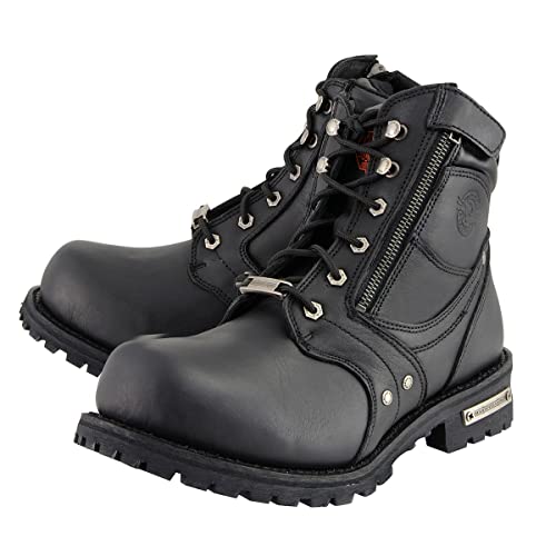 Milwaukee Leather Men's Black Leather 6-inch Lace-Up Motorcycle Biker Rider Boots w/Zipper Closure MBM9050 6