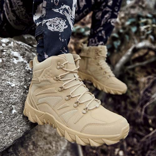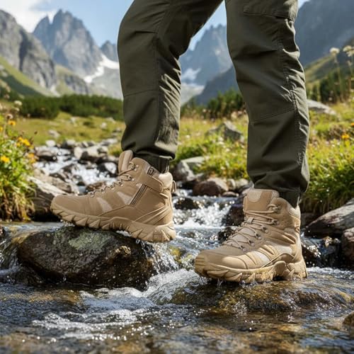 Men’s Tactical Boots Military Work Combat Boots 6 Inches Side Zip Hiking Desert Motorcycle Boot 4