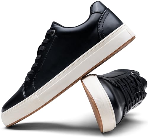 • [Premium Material]: Made from high-quality PU material, these mens sneakers are lightweight, flexible and comfortable to wear. The upper is also scratch-resistant, wrinkle-free and easy to clean, ensuring long-lasting durability and a fresh look.