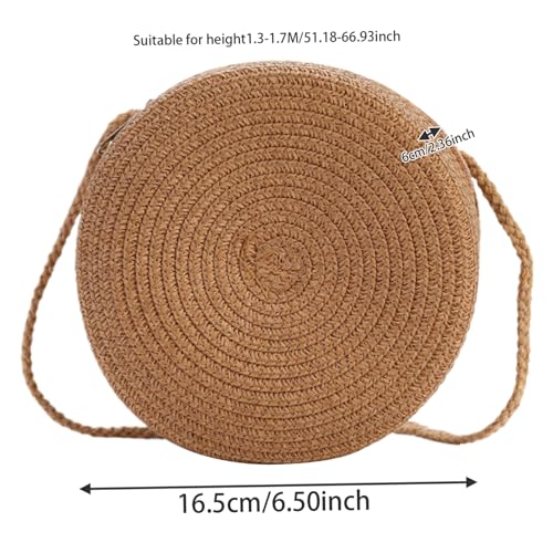 Straw Bag,Woven Bag,Single Shoulder Casual Woven Purse,Round 6.5in Zippered Solid Color Portable Handbag 5