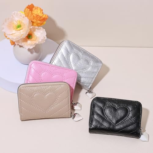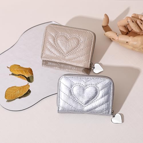 Credit Card Holder, Cute Wallet Women, Love Heart Shaped Zipper Business Card Holder Small Wallets Woman for Cash, Key, Change, ID Card (Silvery) 1