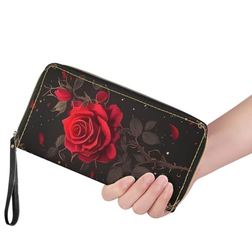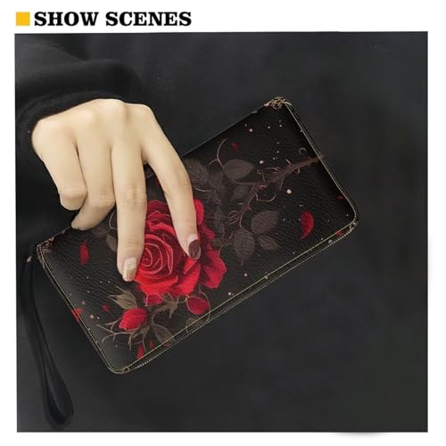 HOT ! Gothic Red Rose Wallet for Womens Around Zipper Long Purse Rfid Blocking Card Holder Clutch Bag Wristlet Wallet