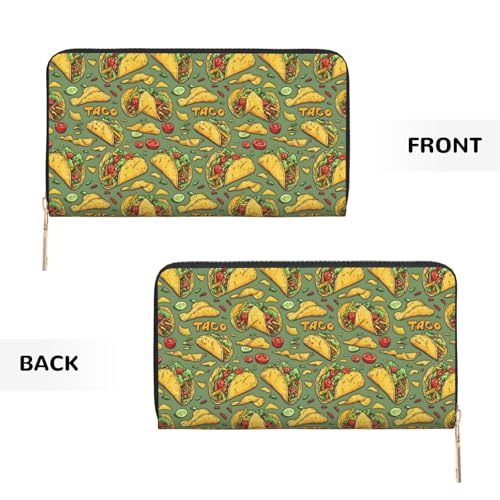 HOT ! Leather Thin Slim Wallets for Women & Men - Tacos Print Card Wallet Holder with Zipper