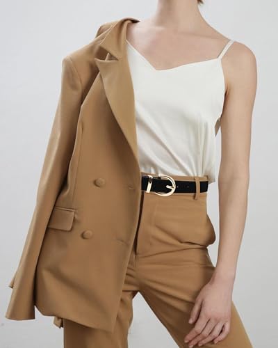 Womens Genuine Leather Belt for Casual Waist Belt Black Leather with Gold Buckle Fashion Ladies Belts for Jeans Pants Dress 6