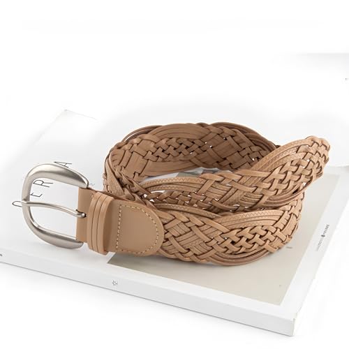 HOT ! Women's Wide Braided Leather Belt with Silver Buckle, Hand-Woven Design with Silver Buckle