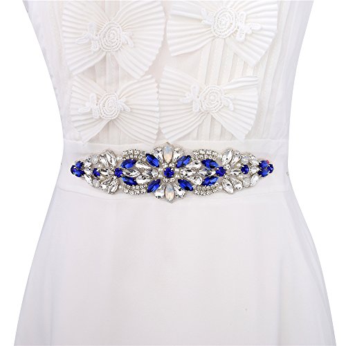 Crystal Rhinestone Applique Belt Bridal Wedding Dress Applique Blue 8.7x1.9 inches 5