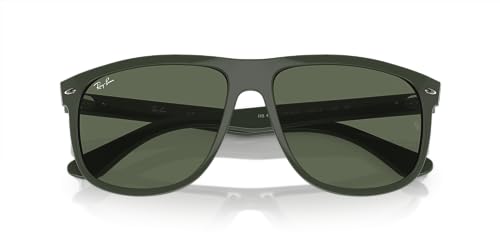 • FRAME FEATURES: RB4147 Boyfriend sunglasses feature a square, green frame with peaked temples and dark green lenses.
