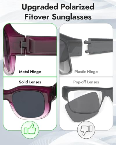 • Ultra Light & Comfortable|The large fit over sunglasses are optimized for driving scenarios. Lightweight durable TR90 frame enables one-hand wearing. Tested temple opening angle for secure fit. Head pressure distribution tech (ear pressure <18g).