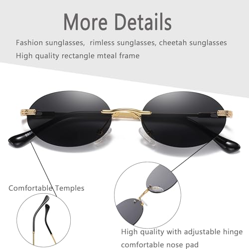 Retro Oval Sunglasses Rimless Small Round Glasses Frameless UV400 Men Women Fashion Shades 4