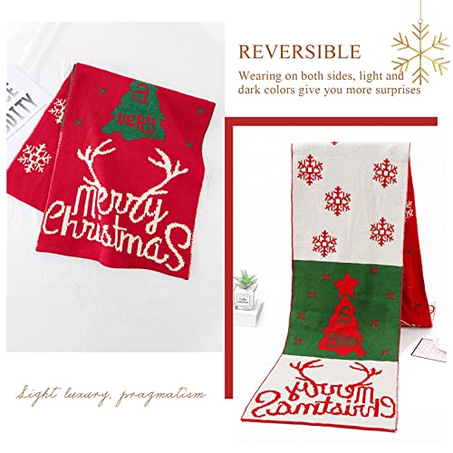 Knitted Scarf For Women Winter Reversible Christmas Reindeer Antler Snowflake Long Pashmina Scarves Shawl Thickened 5