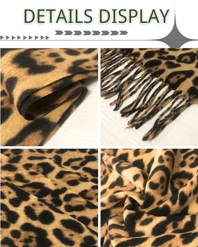 CORIRESHA Women's Casual Leopard Print Scarf Tassels Cashmere Feel Winter Outdoor Thick Warm Scarves 5