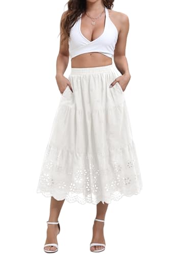 • About Our Skirt:Our Women's High Waist A-Line Embroidered Lace Midi Skirt is an absolute essential for your summer wardrobe. The high waist design not only enhances your figure but also offers a comfortable fit. The A-line silhouette is universally flattering, exuding a feminine and elegant charm. The intricate embroidered lace adds a touch of sophistication and bohemian allure, making it ideal for casual beach outings or any summer event