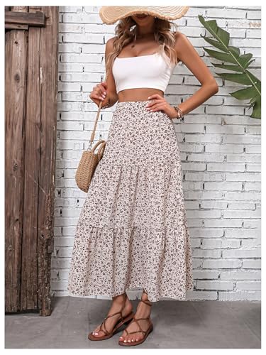 Verdusa Women's Boho Vacation Floral Tiered Flowy Skirt Beach High Rise Maxi Skirts 1