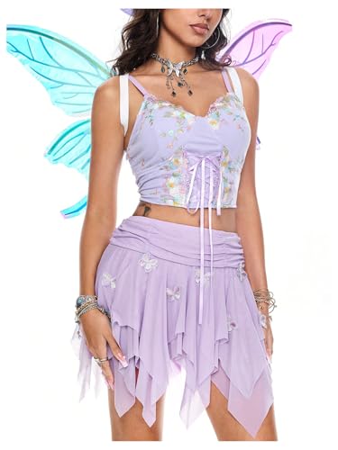 More information about Verdusa Women's 3D Butterfly Ruffle Skirt Ruched Sheer Mesh Asymmetrical Y2K Mini Skirts