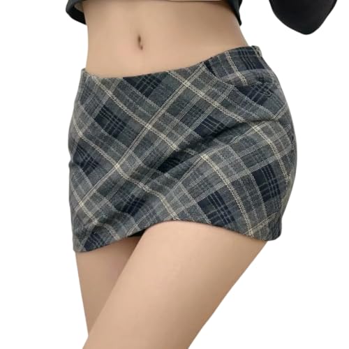 Womens Sexy Low Waisted Plaid Pencil Skirt Bodycon Fit Mini Skirt with Lining Shorts 6