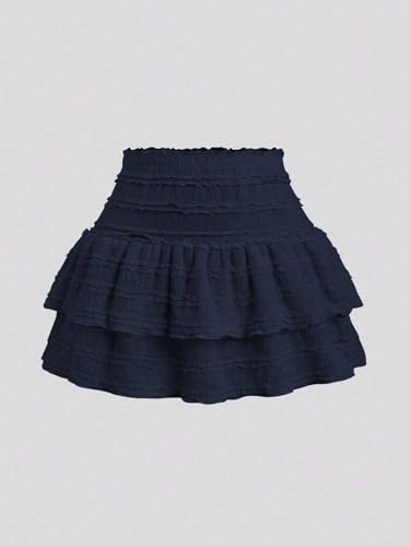 Solid Color Ruffle Double Hem Skirt Casual 2025 Fashion Skirts for Womenv 6
